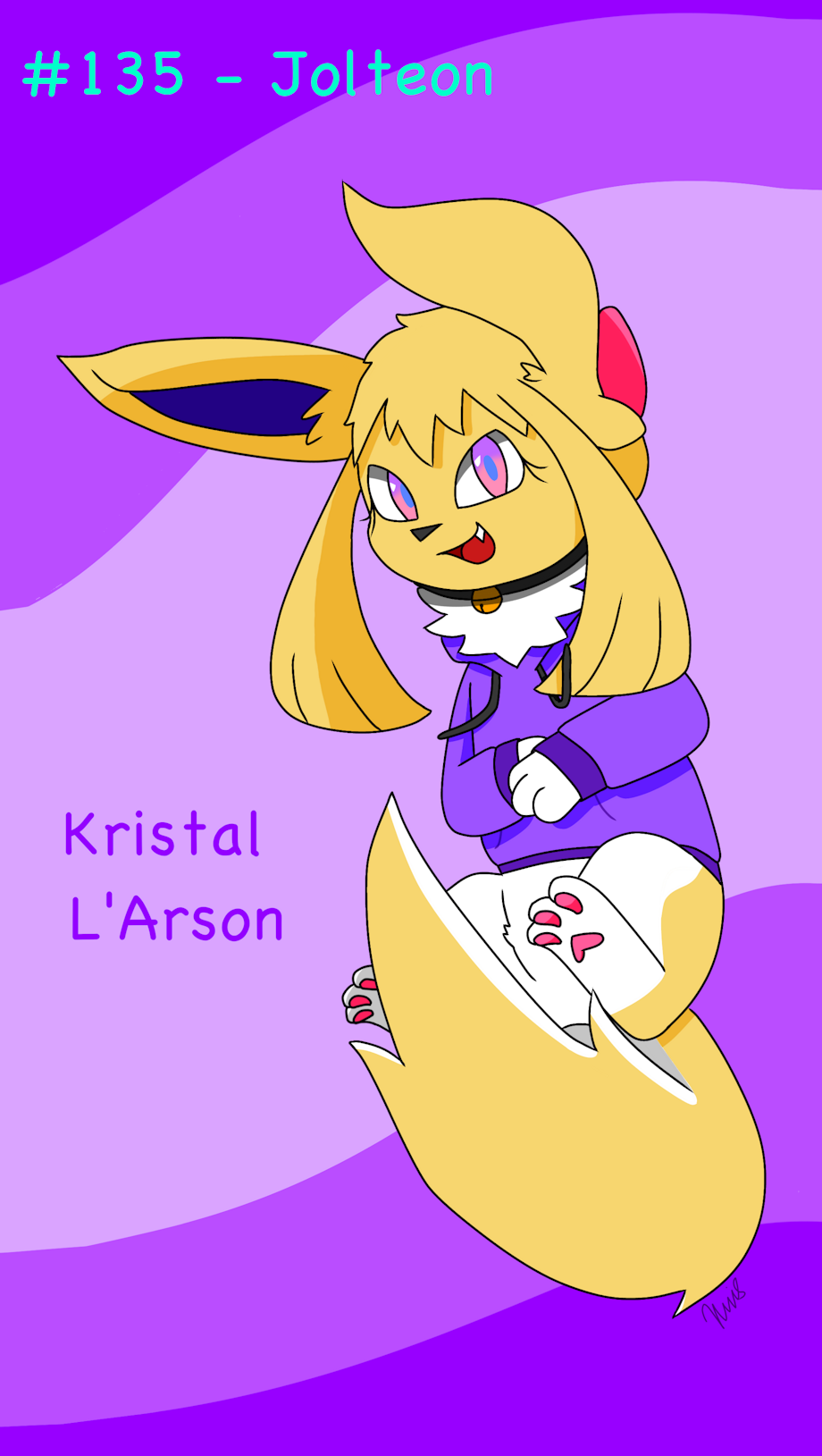 Here is my Pokésona! Her name is Kristal "Krisjolt" L'Arson. She's literally me, but she's a Jolteon!!!