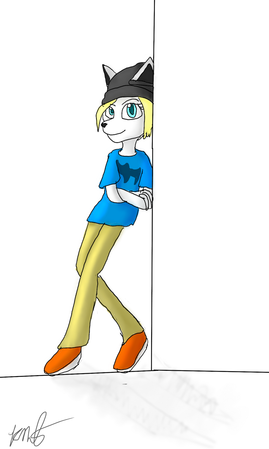 I felt like doing a more tomboy character, I've done a few, but I doodled this cutie randomly in her PJs with another character (who I had named, both pics will be coming), and decided "meh, another OC for the pile." I'm gonna name Julia Arctis, I think.
