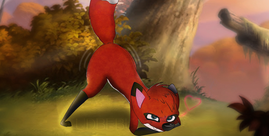 "Walking through the forest, you came across your old friend - a fox named Rita. She was standing in a rather interesting pose and looking at you, waiting for your actions..."