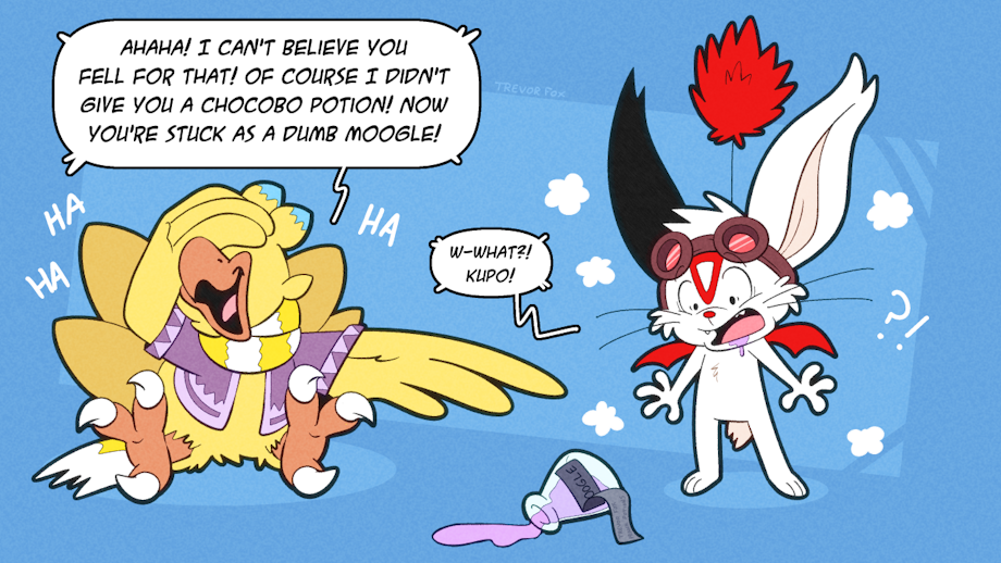 ! Poor Lati. Drinking the wrong potion. With friends like this, who needs enemies, kupo?