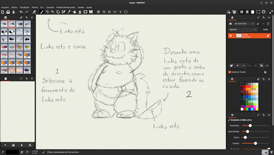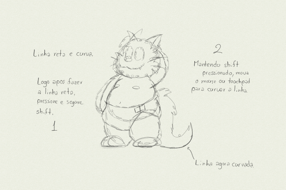 2. Draw a straight line from a point in the drawing to another, like I'm doing with the tail.