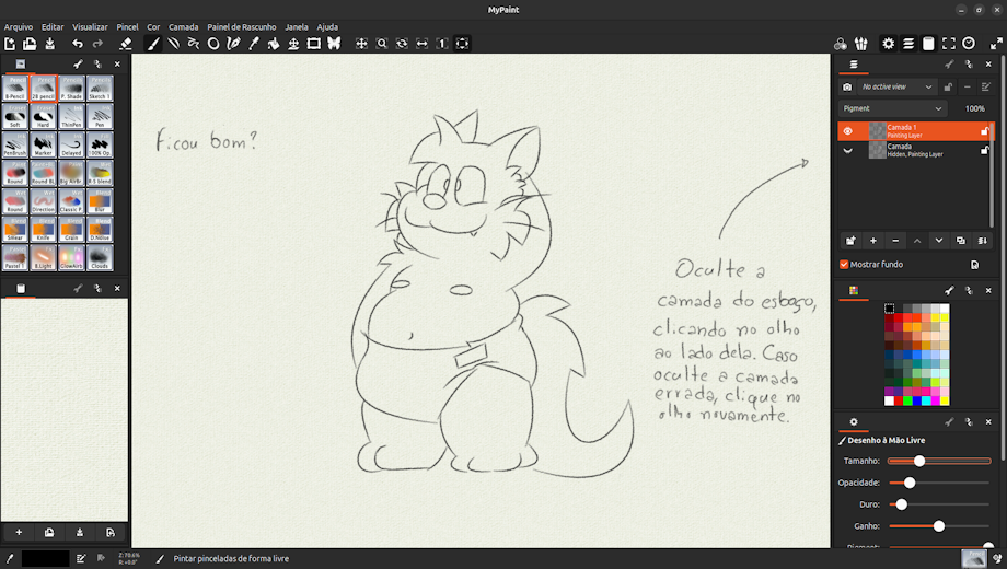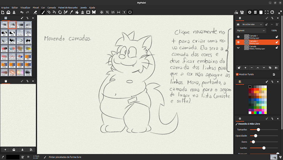 Click again on the + to create a new layer. That will be our color layer and must be under the line layer, so that the coloring does not erase the lines. Move, thence, the new layer to the second place in the list (drag and drop).