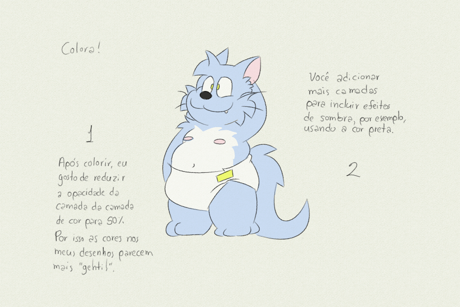 1. After coloring, I like to reduce the opacity of the color layer to 50%. That is why the colors in my drawings look "gentler".