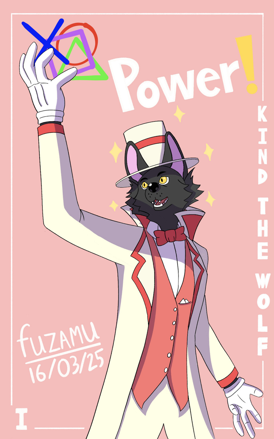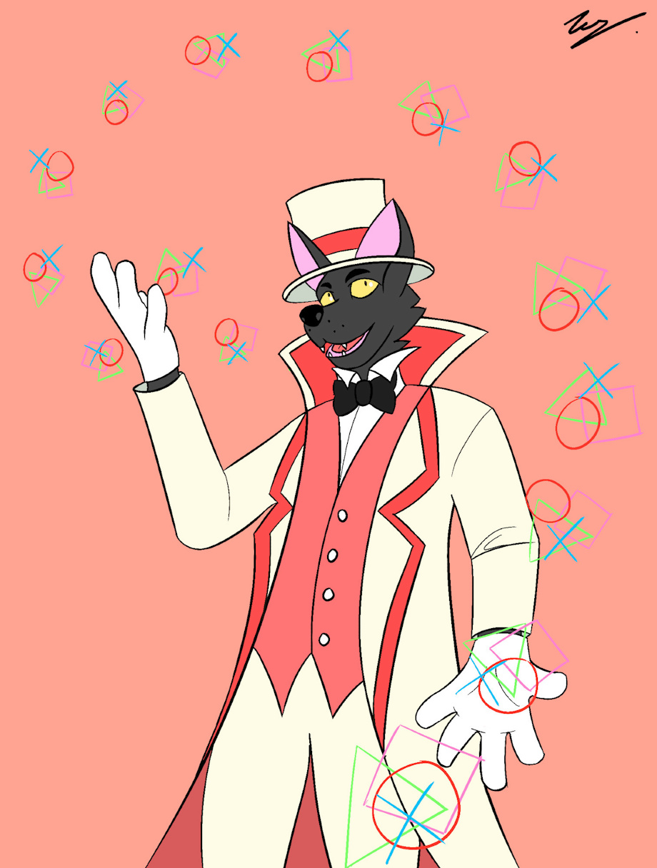 He is my oc. His name is kind the wolf, the creative magician