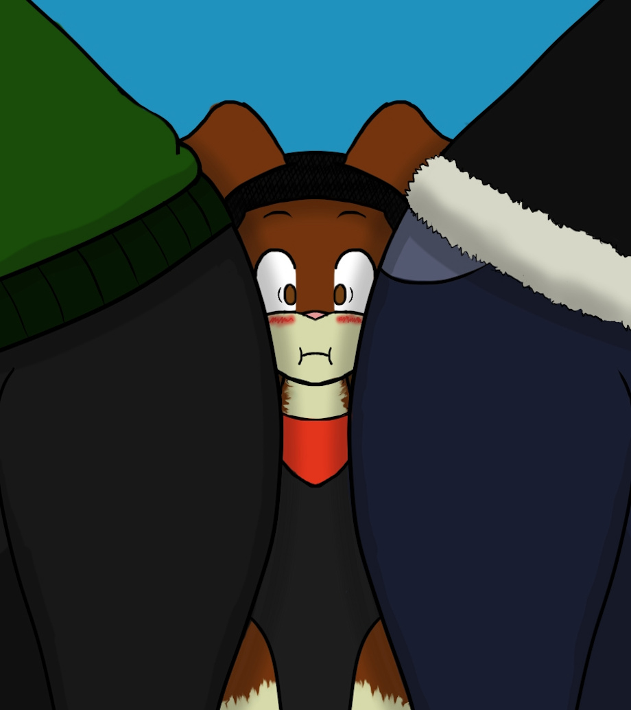 Cap finds himself pinned between two of his favorite ladies' widest assets, although he doesn't seem to mind it. Neither do they.