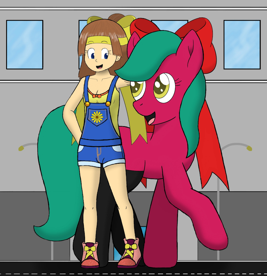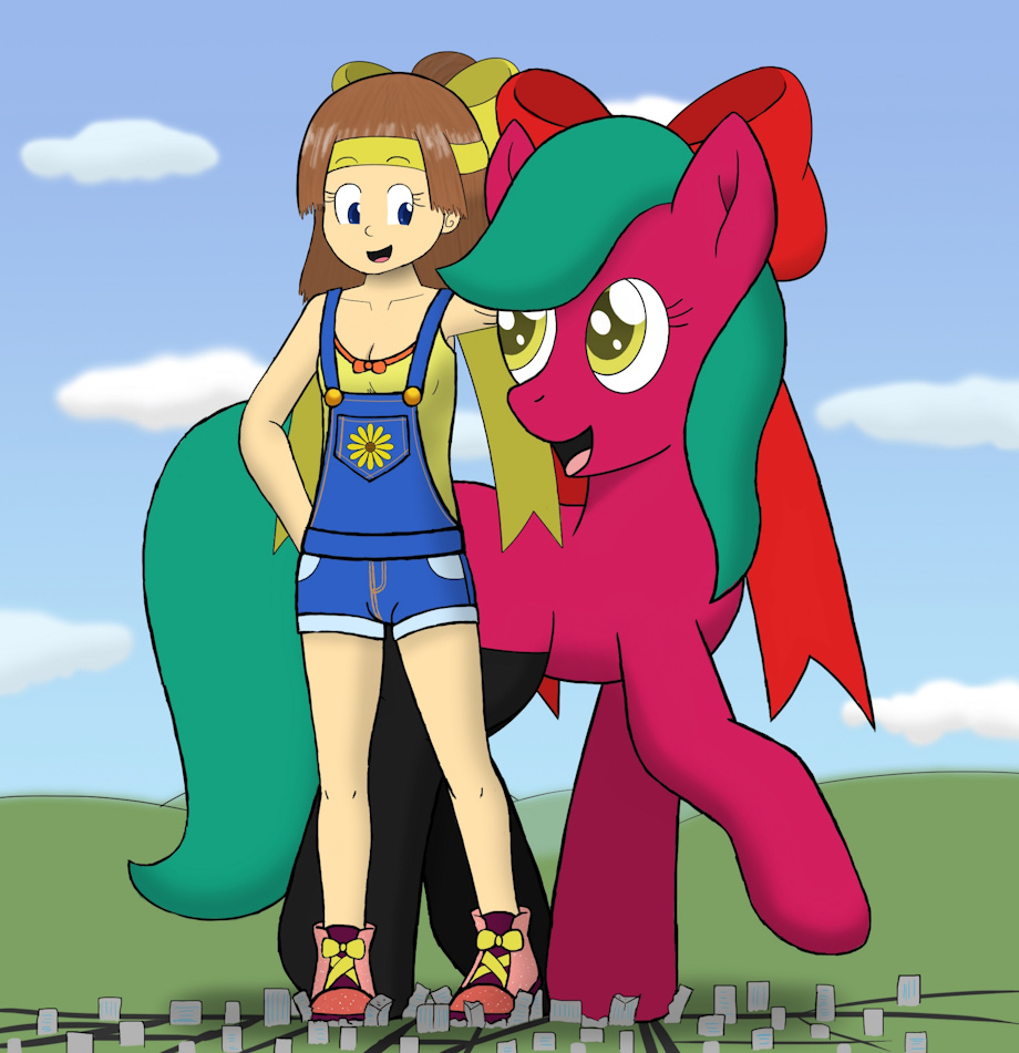 Suzie and Ribbon, aged up and in color! Shown at their current natural sizes, with an additional image that usually results from things getting out of hand with my ideas.