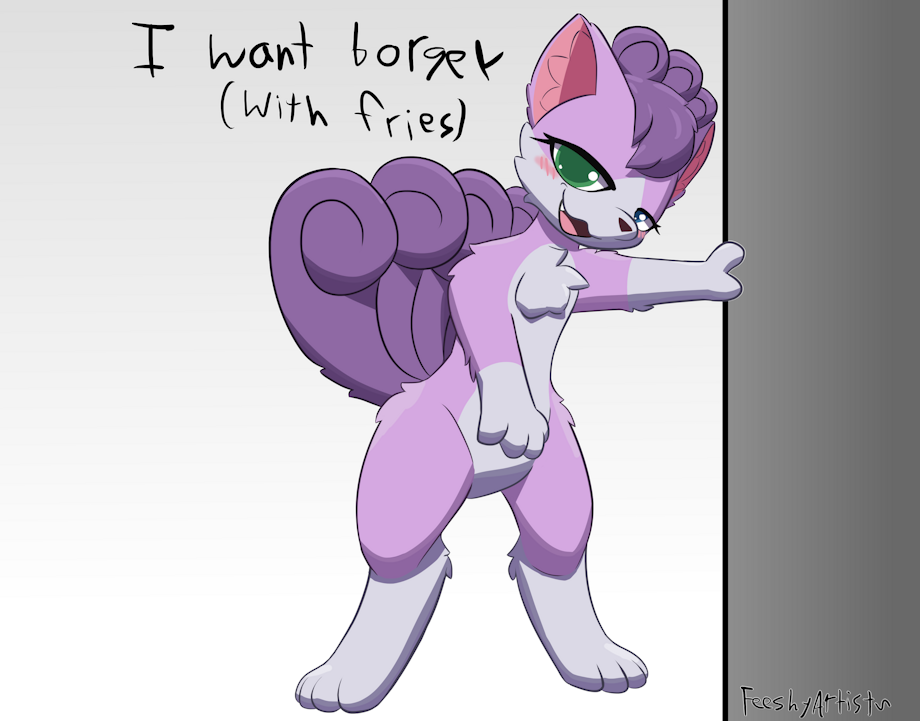does this mean shes got a backwards booty to? though i always imagined vulpix can curl its tails in any direction... or maybe style them in a forwards direction to. still cute nonetheless x3 must hug <3