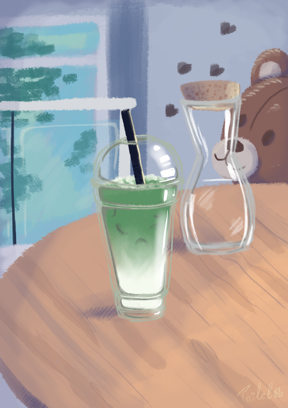 Just a drawing of a drink I love — cold matcha latte with jasmine from my favorite café.