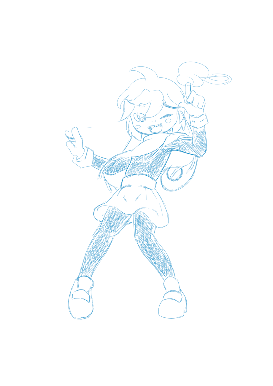 Ahhh he's friggin precious even just in sketch form. Look at that faaaace <3 I'm always weak for some cute buck teefs. And that outfit is sooo cute. Boys in skirts are always very nice :3