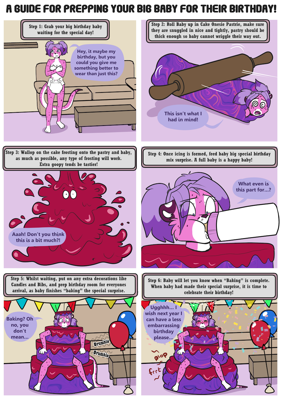 Cakesies sure are fun, but how do you make a Cakesie? Well Nyasia here is in a part of a step by step guide on making one. With a special surprise at the end for her. Though with how many years we've thrown her in cakesies now, she should have caught on in advance. Thanks to Babystar for taking on this comic, and thanks for following me on this birthday of mine!