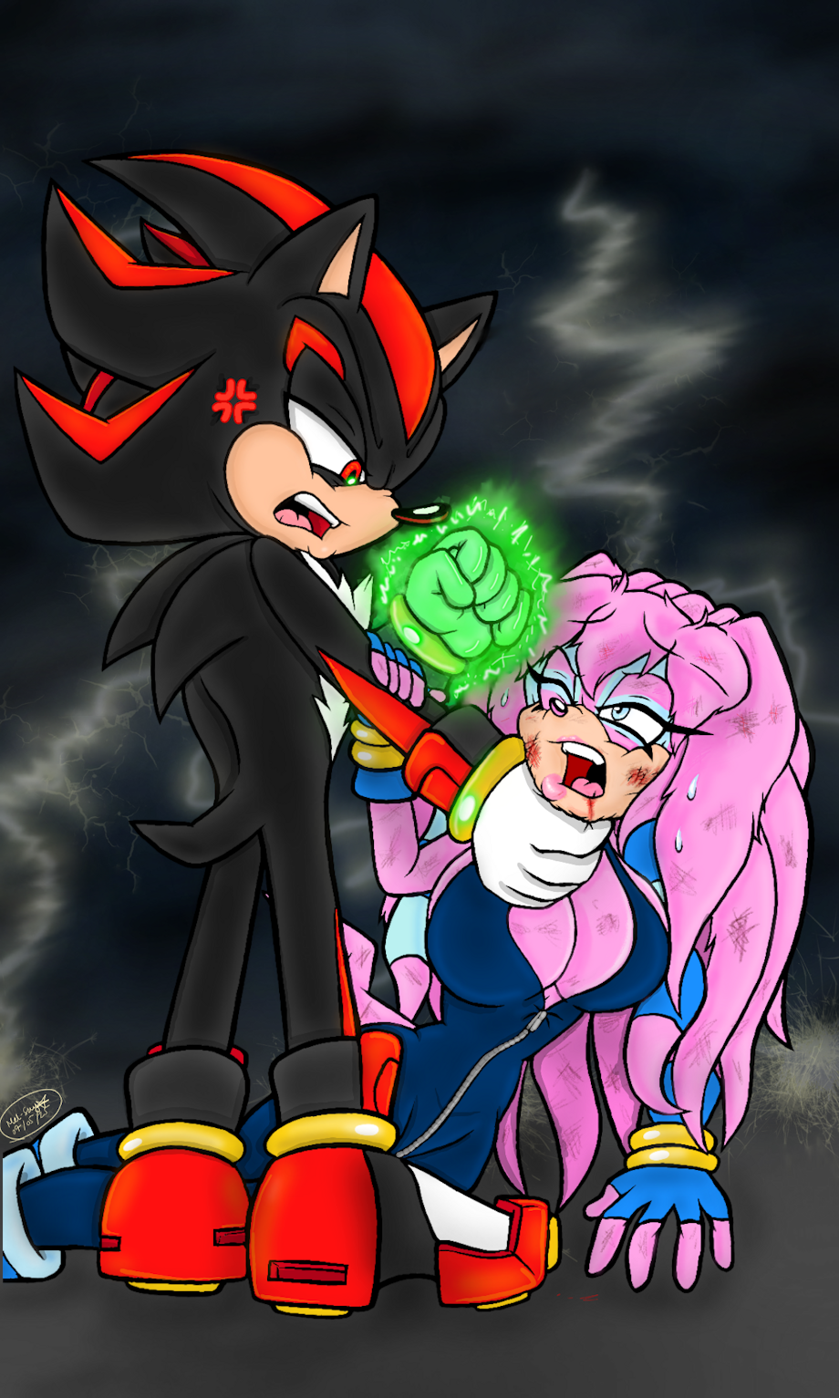 One of several "What If..." pics: What if Shadow the Hedgehog suddenly turned on Sky the Echidna after discovering a secret about her, and decides to terminate her....
