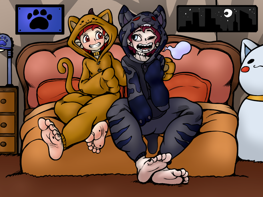 I was given permission to colour this drawing of Luci and Zym hanging out in their onesies.