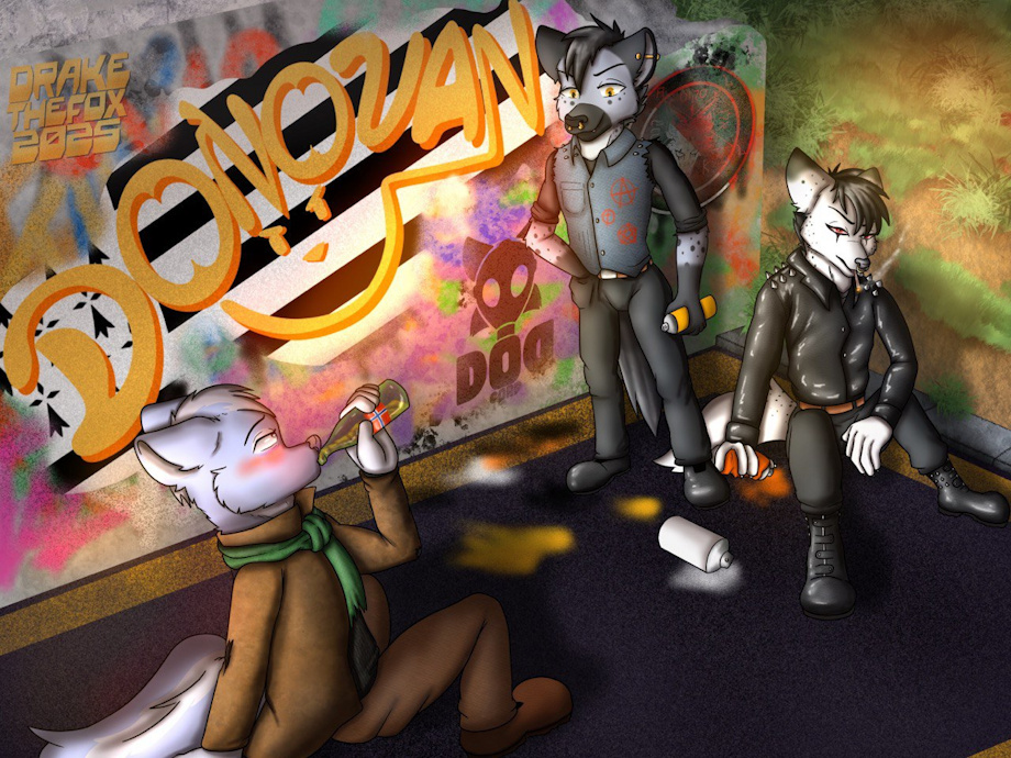 At Donovan's side also often appeared ..., they quickly met at the turn of the streets when Donovan tagged the walls, Allan is a friendly and rather reserved hyena, kind and often calm when they hang out together although the weed he consumes helps him. Allan is unstable and often has strange behavior, he is often indispensable to Donovan when street fights start, Allan can quickly become crazy and bloody, preferring to handle knives and make the assailants bleed for pleasure, although he is really unstable, he seems to have a bond with people, he never attacks Donovan and his friends and seems to love him, which makes him a truly precious friend.