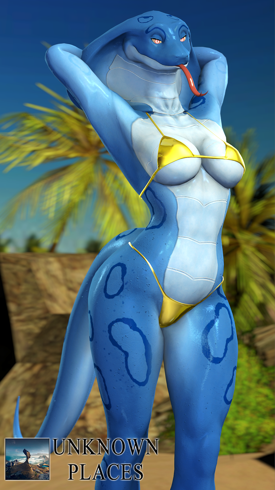 ----- Hello everyone, I hope you're well. I heard there was a week where many female characters wore a gold bikini... well, here's Misty wearing one. It actually looks quite good on her, and I really like the result of the gold texture, which was a challenge to apply. Without further ado, I hope you like it.