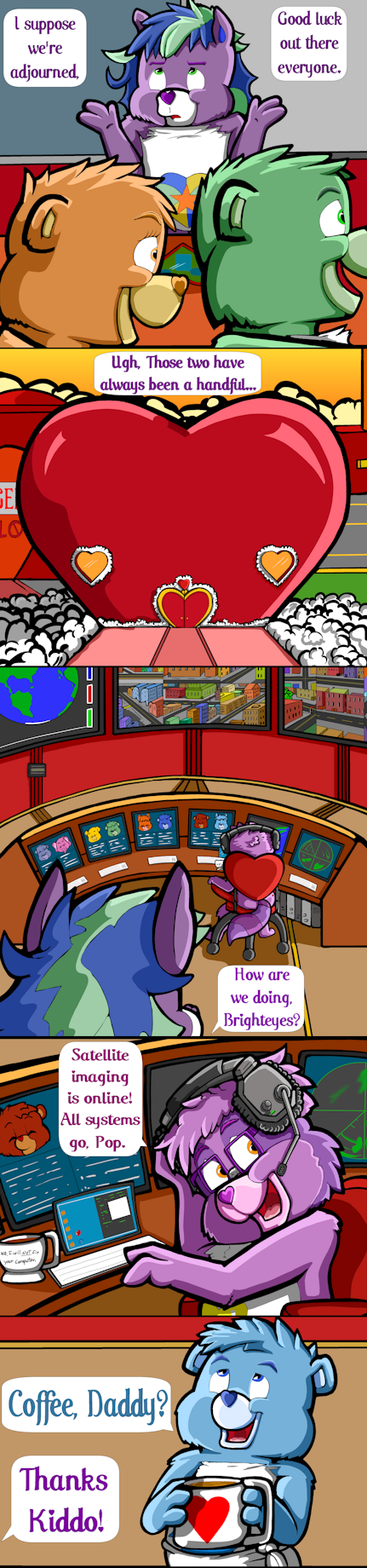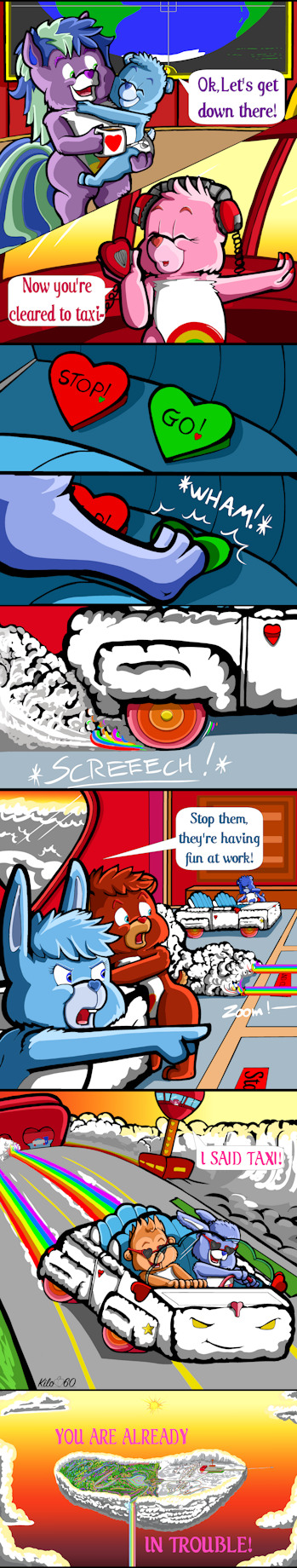 1: Tugs is so cute in all art you do (Hugs too) 2: Stop them, they're trying to have fun XD 3: That zoomed out shot of Care-A-Lot is amazing. I love how the Forest of Feelings and the Kingdom of Caring are split by the castle. Though I'm pretty sure to get to the FOF was by a boat trip over the sea in the clouds in the movie, but eh.