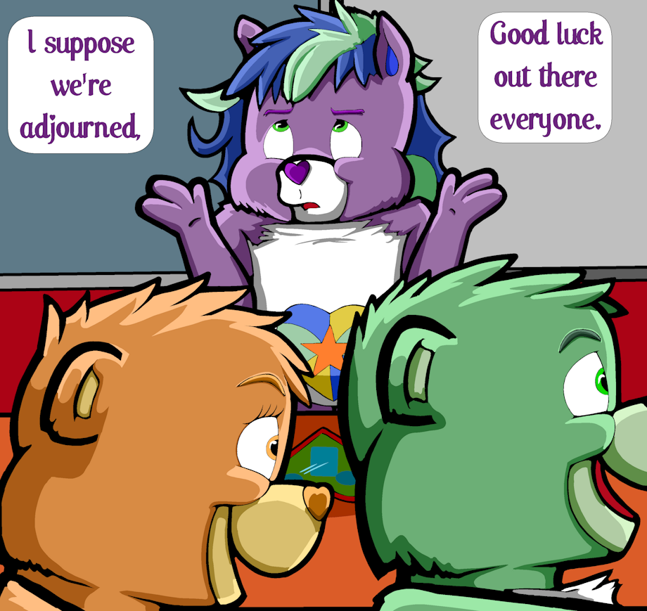 1: Tugs is so cute in all art you do (Hugs too) 2: Stop them, they're trying to have fun XD 3: That zoomed out shot of Care-A-Lot is amazing. I love how the Forest of Feelings and the Kingdom of Caring are split by the castle. Though I'm pretty sure to get to the FOF was by a boat trip over the sea in the clouds in the movie, but eh.