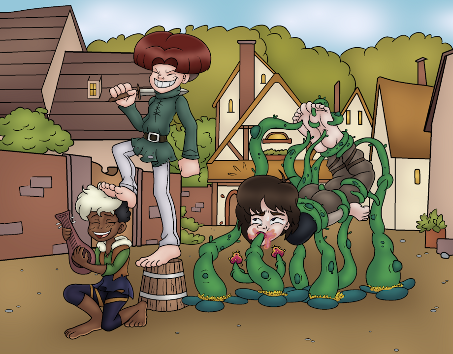 That's when the tickling started. Harold could feel it on his feet, a tendril pressing into his sole and wiggling itself back and forth. Then a second tendril drawing in circles. Then a third and a fourth. One tendril snuck between Harold's toes and started driving him absolutely crazy. All of this was happening while no one was doing anything, so Harold tried calling out but...