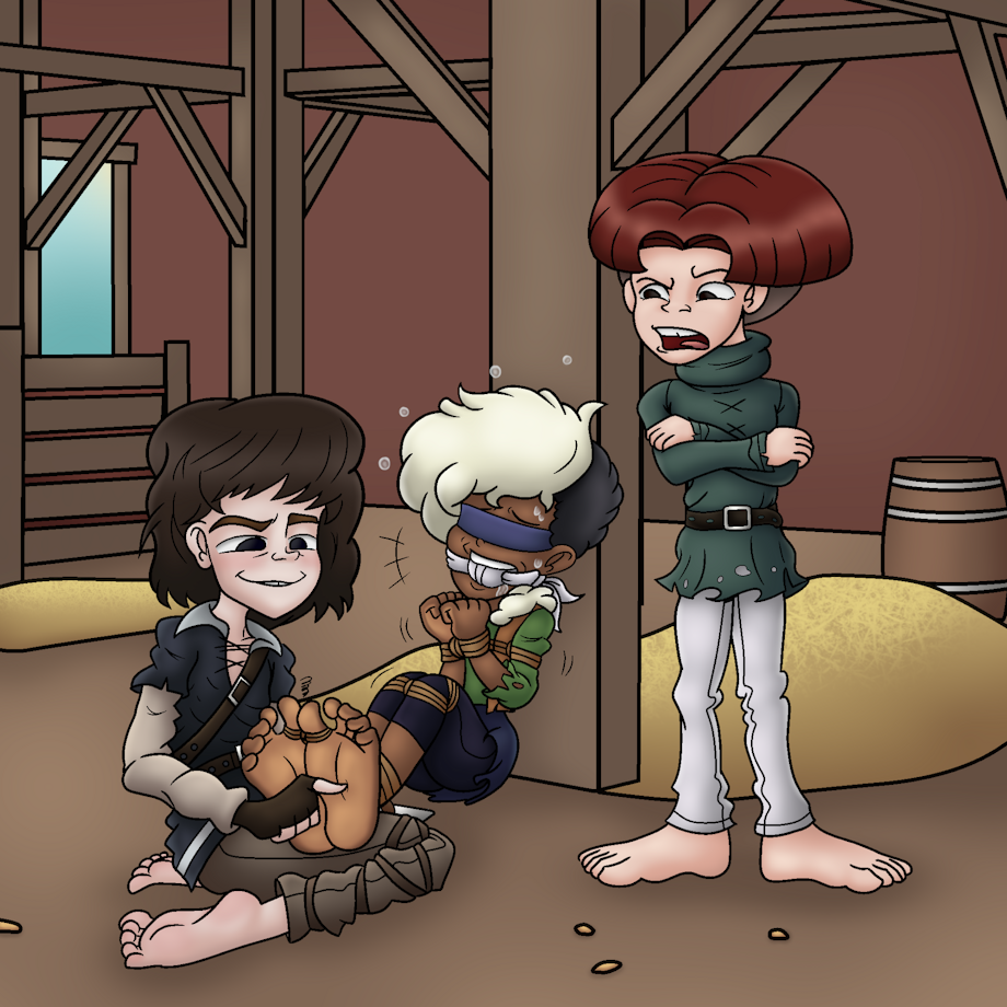 Zym decided that Niko would look best dangling from the ceiling with the other Halloween decorations. Zym was more than happy to use his magic to help spice up Lapis' party a little bit. Kertie also decided to perform a little bit of magic, throwing some pocket glitter onto his favorite elf-friend. Zym may now have another candidate to hang from the ceiling...