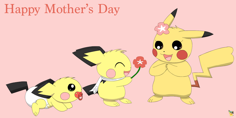 Happy Mother's Day! Sparks presenting a flower to his mom while baby Jolts watches :3