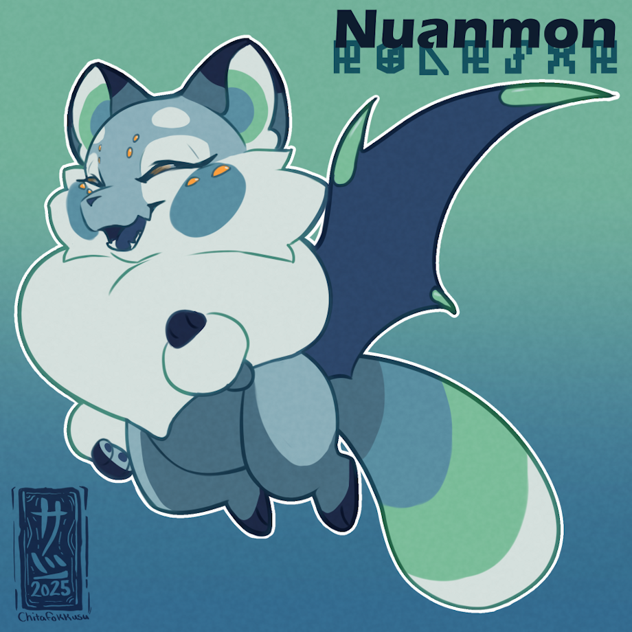 Back when I was hard into Digimon (around the time when Digimon Survive came out) I designed Digimon rookies for my husband, some friends, and myself. I had finished sabout 80% of them at the time but never really went further than that. Skip to some time this year my husband said he wanted to play Digimon Cyber Sleuth and my drive was reinvigorated! I wanted to make our little guys our fugis for the stream, so I started with my husband first! His Digimon is called Nuanmon, she is a data type Digimon who is more then what she seems! I would like to do more with these little guys but I'm not exactly sure what yet, either way up next is my Digimon please look forward to that!