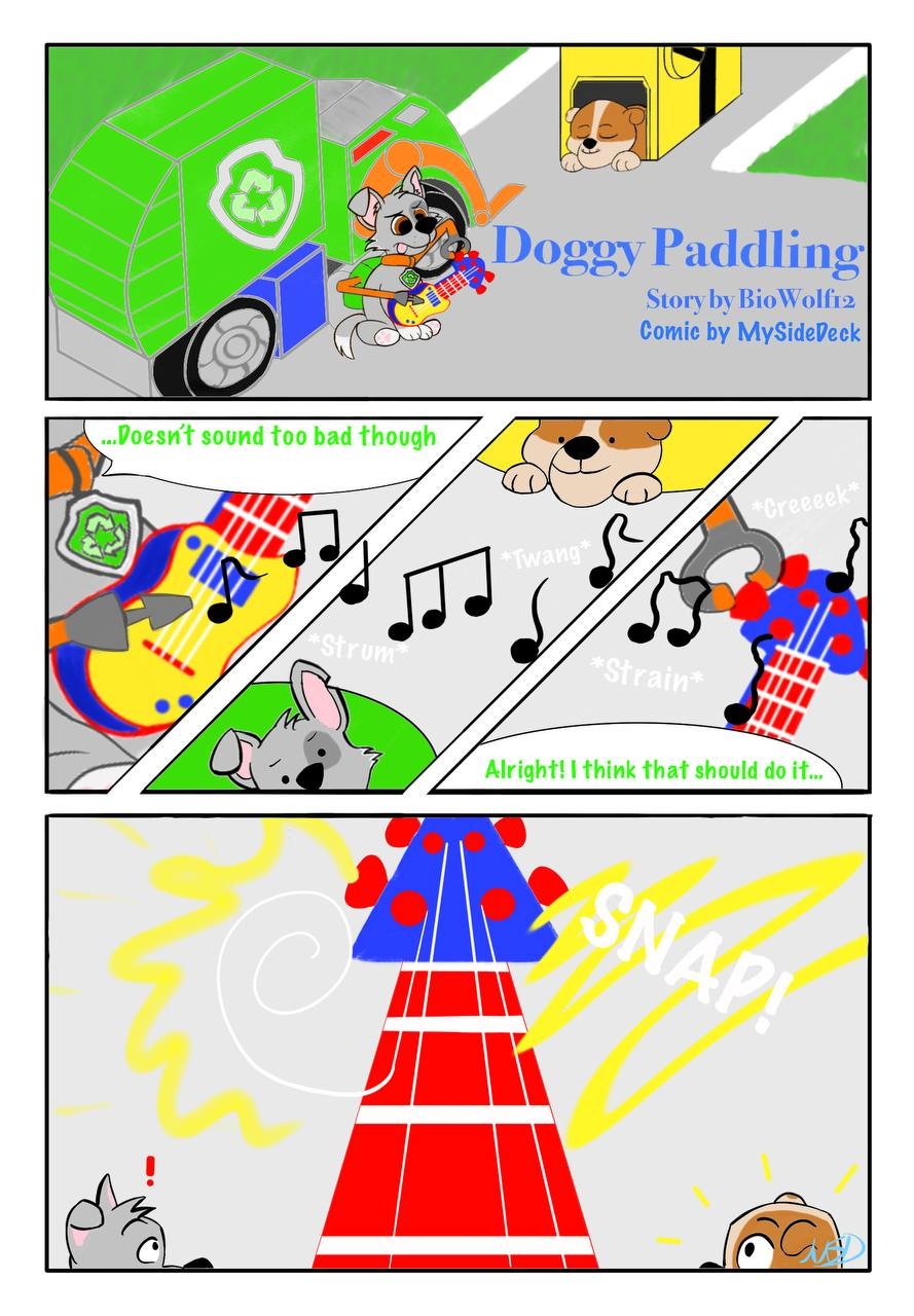 I've been wanting to turn the wonderfully written stories by Biowolf12 into comics for a while now. Here's the first page of Doggy Paddling. Had some time to work on this because I'm sick, so I'm unsure how quickly I'll be putting out pages in the future. Also, first time putting something into comic format, so please forgive me while I figure out how to do pacing and backgrounds and stuff <3