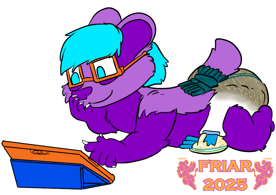 Illustration of Everett the wet and messy diapered badger watching cartoons on his tablet in the treehouse while flopped on the floor.