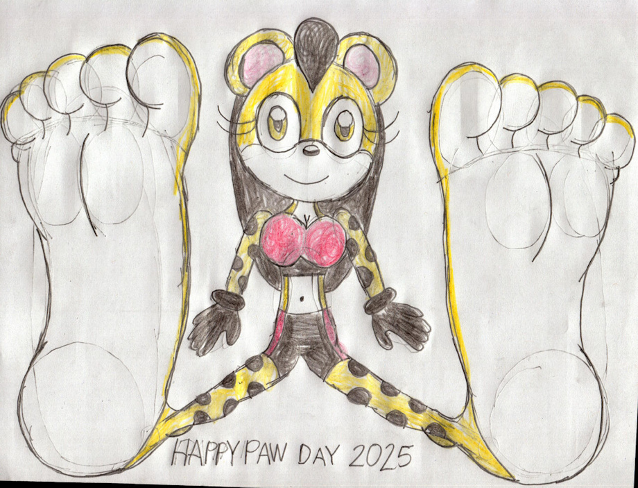 For Paw Day 2025, I drew my OC Kathy the Cheetah showing off her big fast feet.
