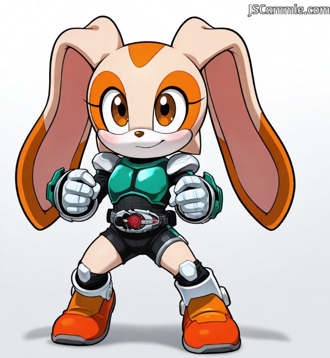 Prompts: loli, cute, cream the rabbit, henshin-belt, kamen-rider, melee weapon,