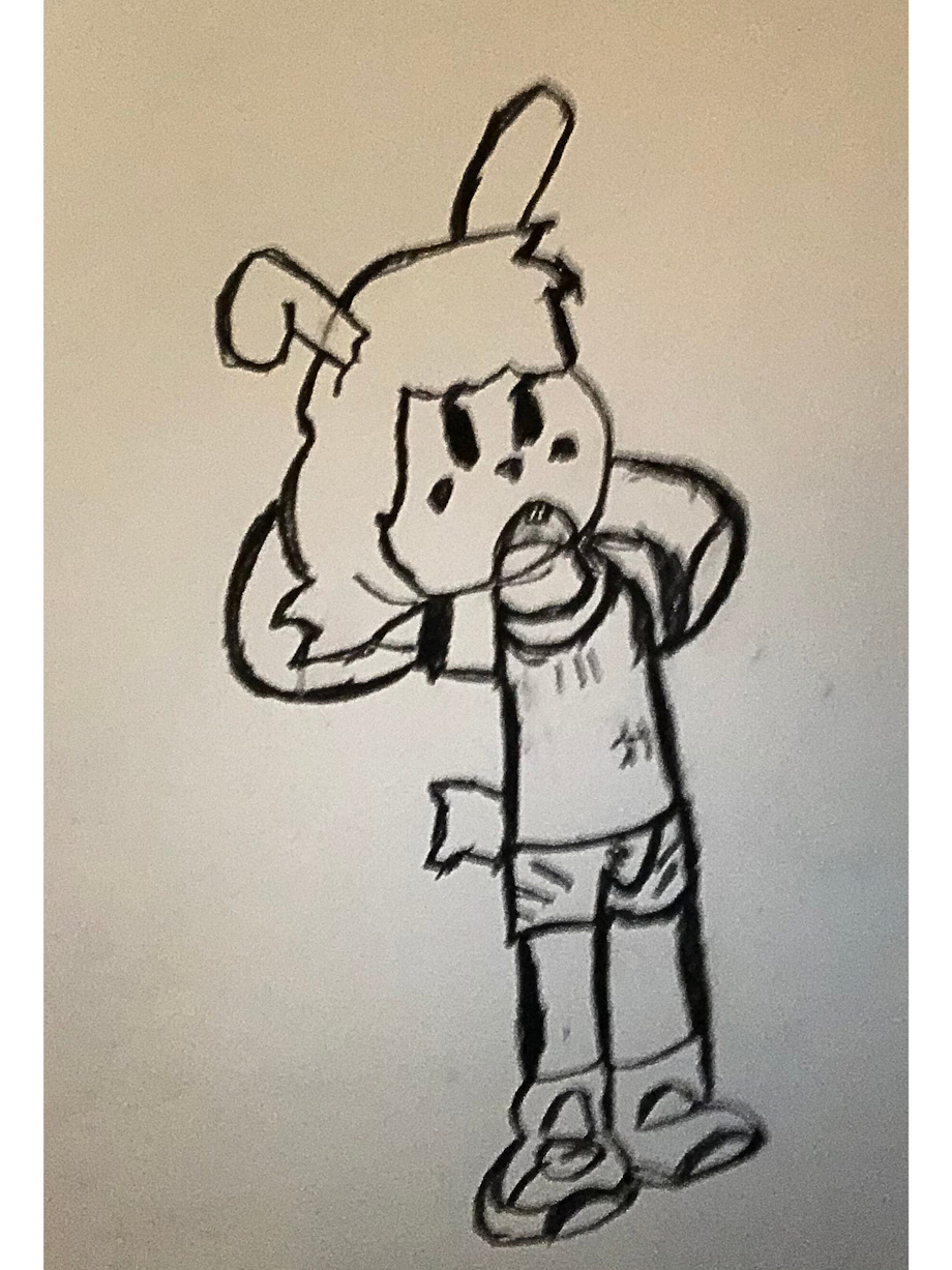 I practiced with drawing Smokey again. This time, I had the idea of using a weight on my wrist to see if it would help with my drawing. I think it looks a lot better than the first drawing but not as much. I hope you enjoy anyway.