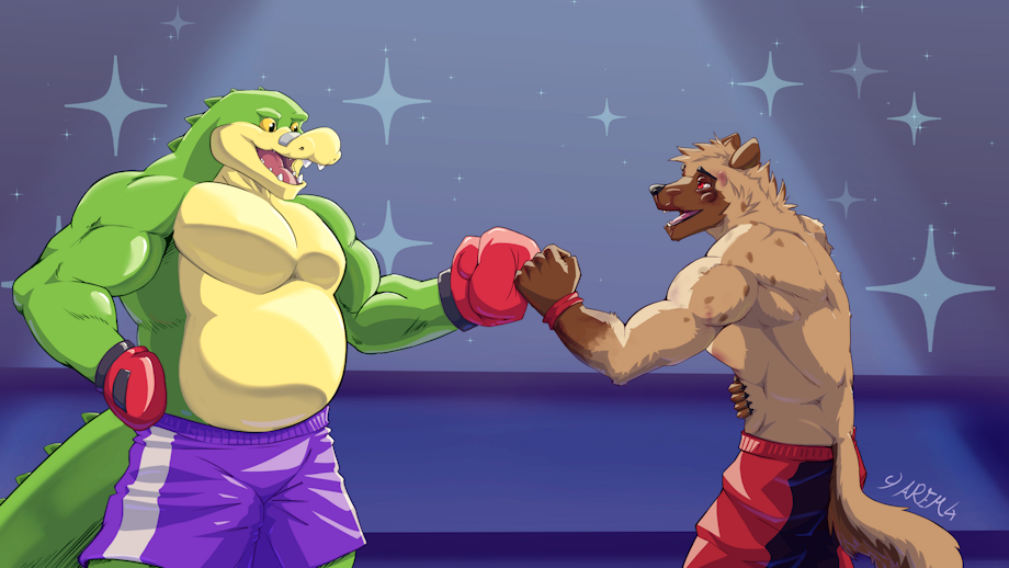 Despite being heavily bruised, especially around the face Ashki manages to get to his feet and give the gator a friendly fist bump to his opponent.