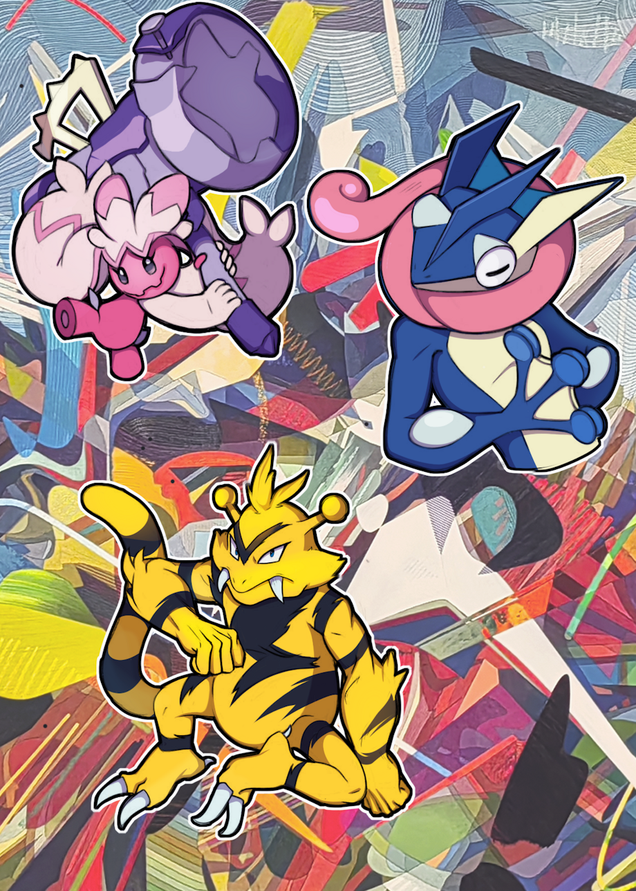 Here are some Pokémon sketches I created as an artistic exercise: Greninja, Electabuzz , and Tinkaton
