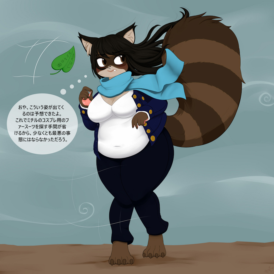 ふーん、こういう姿が出てくるのは予想できたよ。これでミチルのコスプレ用のファースーツを探す手間が省けるから、少なくとも最悪の事態にはならなかっただろう。(Hmm, I guess I saw this coming. This will save me the trouble of finding a fursuit for Michiru's cosplay, so at least it's not the worst case scenario.)
