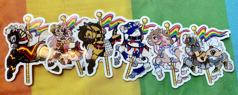 NEW! Kink Carousel stickers 🎠🌈 3" die cut stickers representing some of yr fave fetishes 💕
