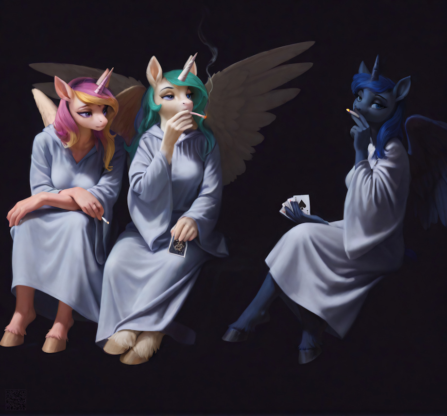 female 1,121,314, anthro 232,545, pony 107,570, equine 36,729, wings 31,936, ai generated 25,989, females 25,424, mare 20,294, alicorn 10,842, girls 10,229, horn 9,023, hooves 8,648, stable diffusion 7,059, smoking 6,146, parody 4,796, ai art 4,182, drinking 3,935, princess celestia 3,724, princess luna 3,718, ponies 3,572, automatic1111 2,903, cigarette 2,585, photoshop 2,050, princess cadance 1,442, mares 809, cards 789, robes 665, stablediffusion 502, satire 396, gambling 258, photoshopped 198, vice 127, civitai 106, novafurryxl 85, playing cards 71