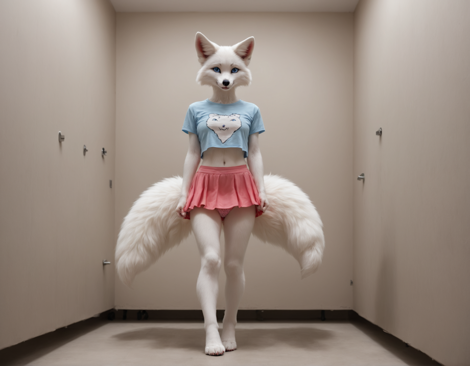 The person playing Ontrix contacted me and requested a SFW version so here is miss Ontrix fox in a normal crop top and a pink skirt with panties.