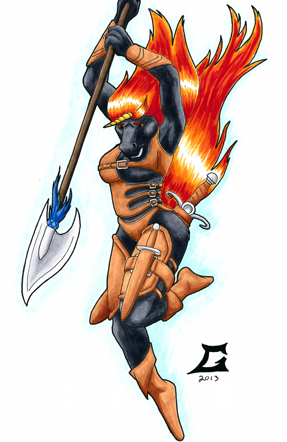 Winola is making a diving attack on some unsuspecting enemy. Just because she is a renowned warrior doesn't mean she won't ambush if the odds are against her.
