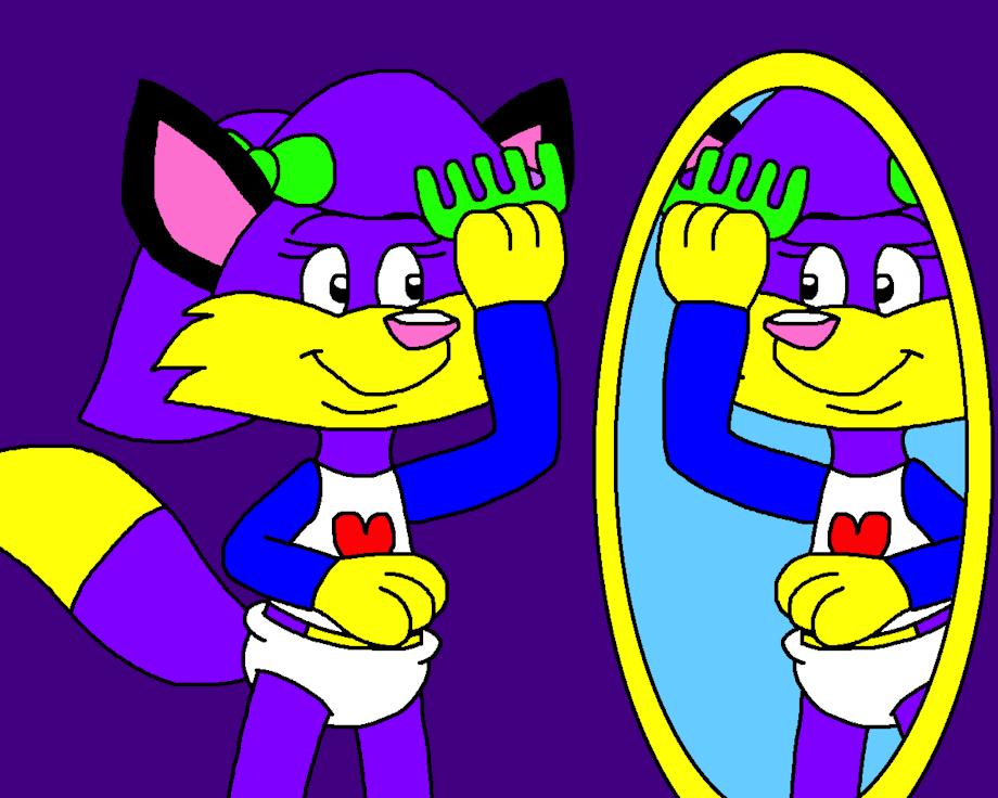 Lilly the Fox Coming a Hair in the Mirror at the Bedroom.