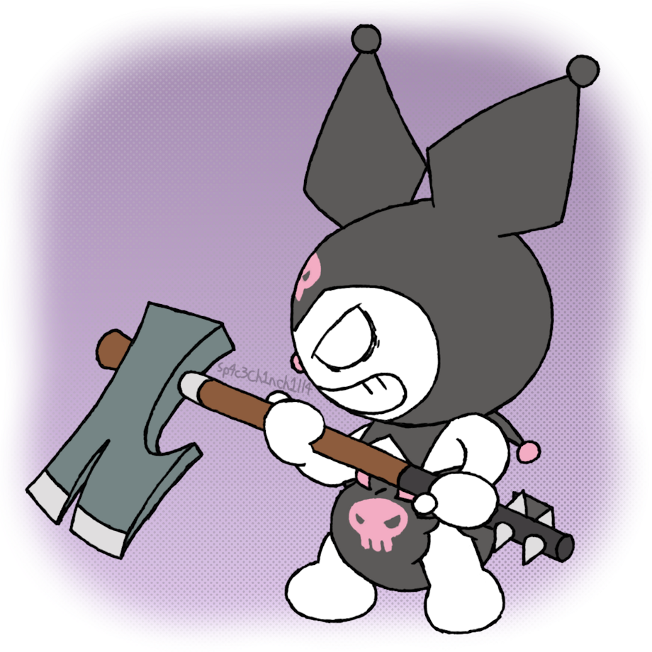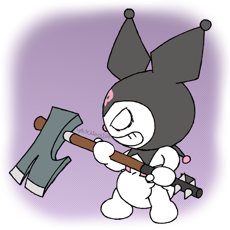 Kuromi's real mad! Where'd she even get that axe from!? Probably shouldn't have made fun of her diapers...