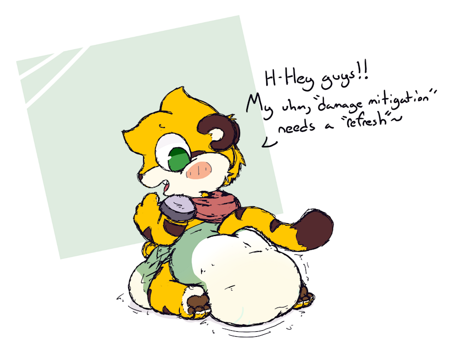 Not my fault I have the super rare 'Pamped Protector' class! Besides, diaper changes are cheaper than potions so imagine how much money we're saving~