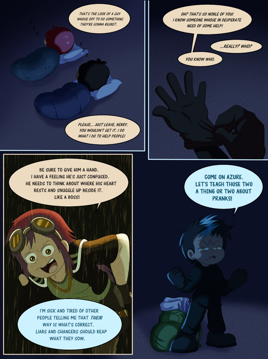 When the sleepover started it was three on two. Then Azure had to work around his targets adding in a wild card. He relayed the situation to the one who hired him and now they've taken it upon themselves to use this to their advantage.