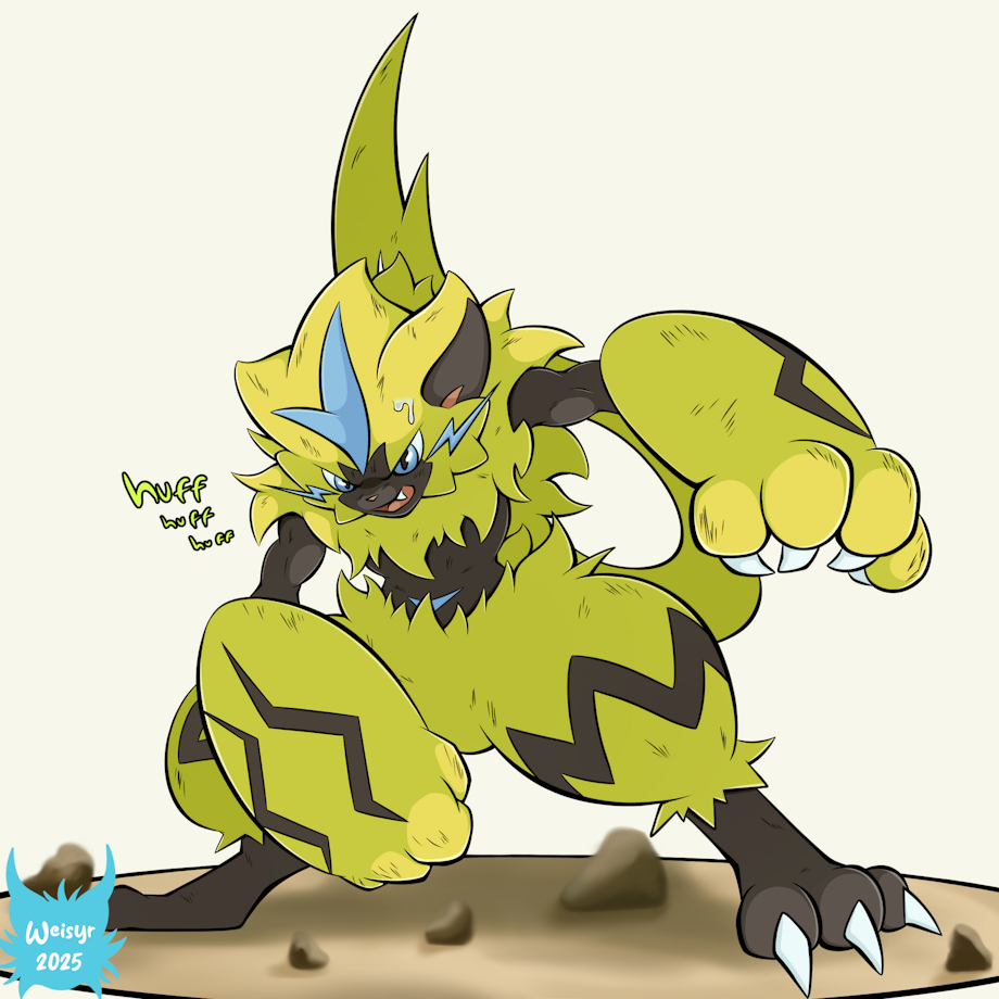 A bit of an older Zeraora drawing that I figured I should post, when I was practicing more desert or dry landscape vibes but only partially and still figuring stuff out!