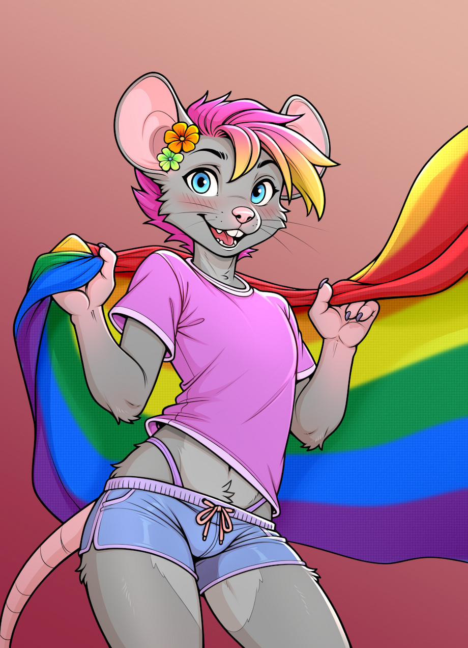 Such a pretty maus! Love the outfit and the pretty lil flowers in your hair, and that big, happy smile makes the picture so good. The flags look great, too! Always great to see more of ya and happy Pride! I hope you're having a wonderful month!
