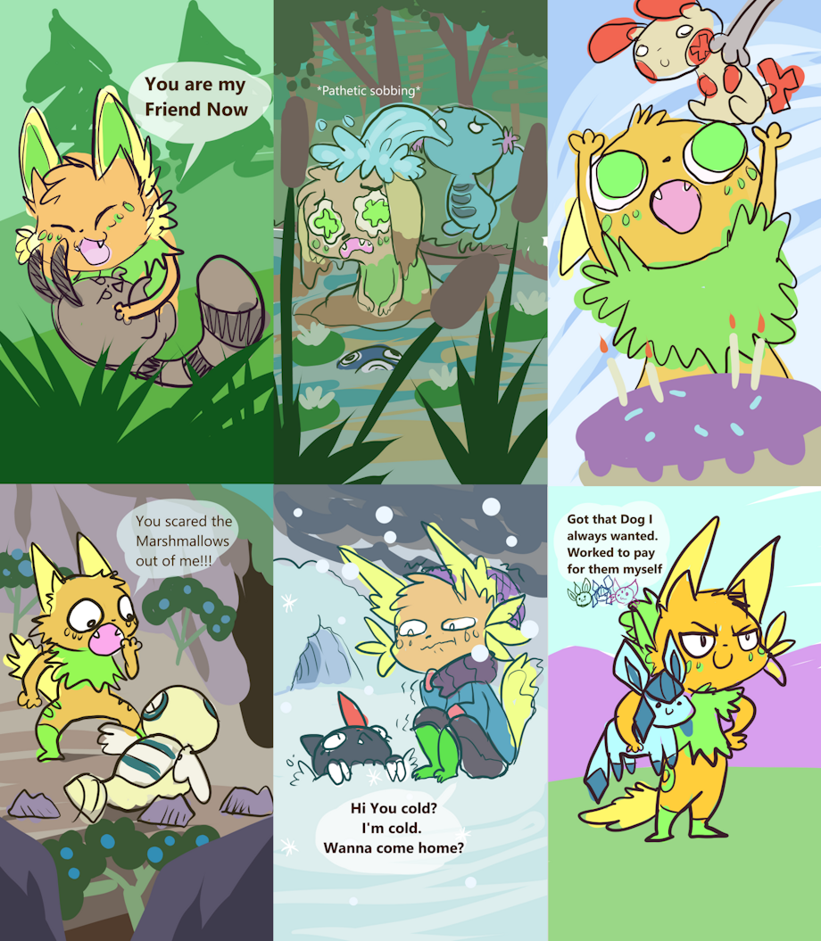 I gave myself six pokemon instead of four because of how many pets I have and currently do care for. If I didn't have a dog, Eevee would've probably been the Azumarill or Pumpkaboo. I spent three days trying to determine what mons would or wouldn't be around where I grew up and what mons would be commonly bred or invasive here etc, and then picked out some of my biggest memories from there relating to animals and events.