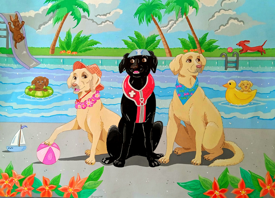 A painting for a friend who wanted theirs dogs drawn in Disney style