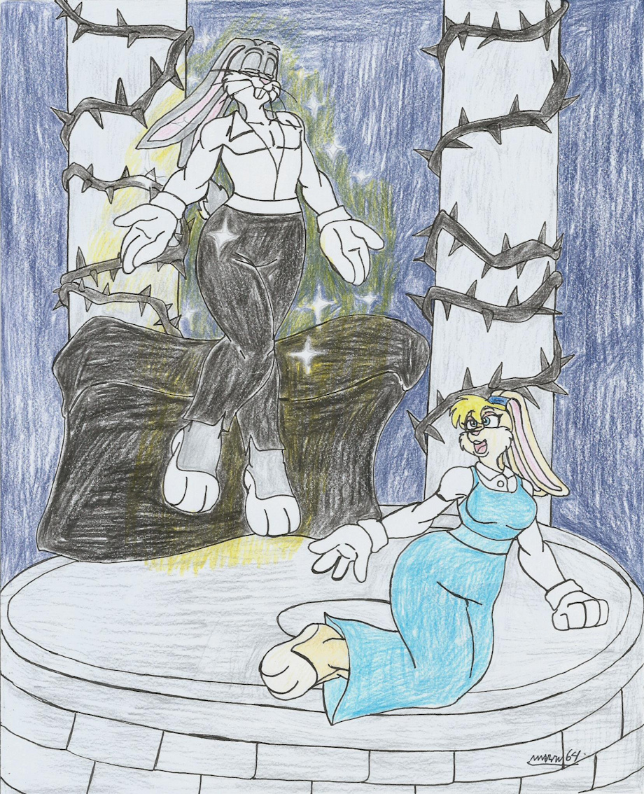 Bugs Bunny and Lola Bunny are remaking the scene from "Beauty and the Beast".
