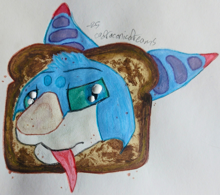 I've finally gotten around to painting my adorable Nayokadoren named Ryn, a Copyrighted CLOSED and Regulated Species owned by Hannah Victoria Smith-Loveday. Yes, that is bread on his head. Because why not, haha. What do you think of this piece? ^.=.^