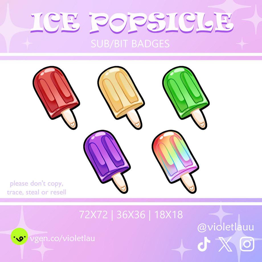 Terms of use ✦You can use it on Twitch, YouTube, Discord, etc! ✦Credits are not mandatory, but if you want to credit me you can link my Vgen or any of my networks. ✦Please no sharing, reselling, stealing, stealing, trasing or for commercial use. ✦I do not accept returns, exchanges or cancellations. ✦Do not claim my work as your own.These are not non-exclusive badges, meaning they will be sold to others as well.