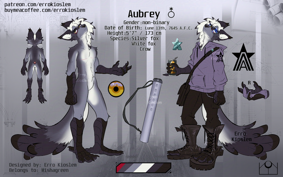 Aubrey's ref sheet + design Aubrey is uni student busy with architecture faculty. Their passion (and curse) is gothic architecture. It is quite demanding subject so they barely can find time to sleep or care about their look. Custom design for Mishagreen p.s. Comms are open!