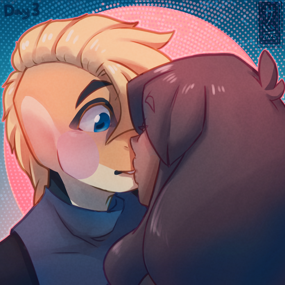Back in February I took part of a week long challenge called OC Kiss week were you draw non-cannon characters... well, kissing =p for the week of valentines, if you're curious here is the OC Kiss week 25 info! For this challenge I chose my OC's Dunn and Kit for the first 4 prompts and Dunn and Tecu from Pathfinder for the last 3 prompts. As for why I'm posting this now, to make a long story short, I made pre sketches for each prompt a week before and was determined to get 4 out of 7 done during the initial week. Which I had succeeded in doing, however since I liked all the pre-sketches of the remaining prompts, I wanted to finish those too, which took about 3 months later to complete. Even though it took a while to finish I had a lot of fun for each prompt and learned a lot!