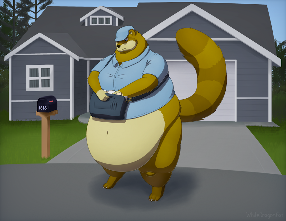 A commission for philistine (FA) a mailman searching for a letter in his bag